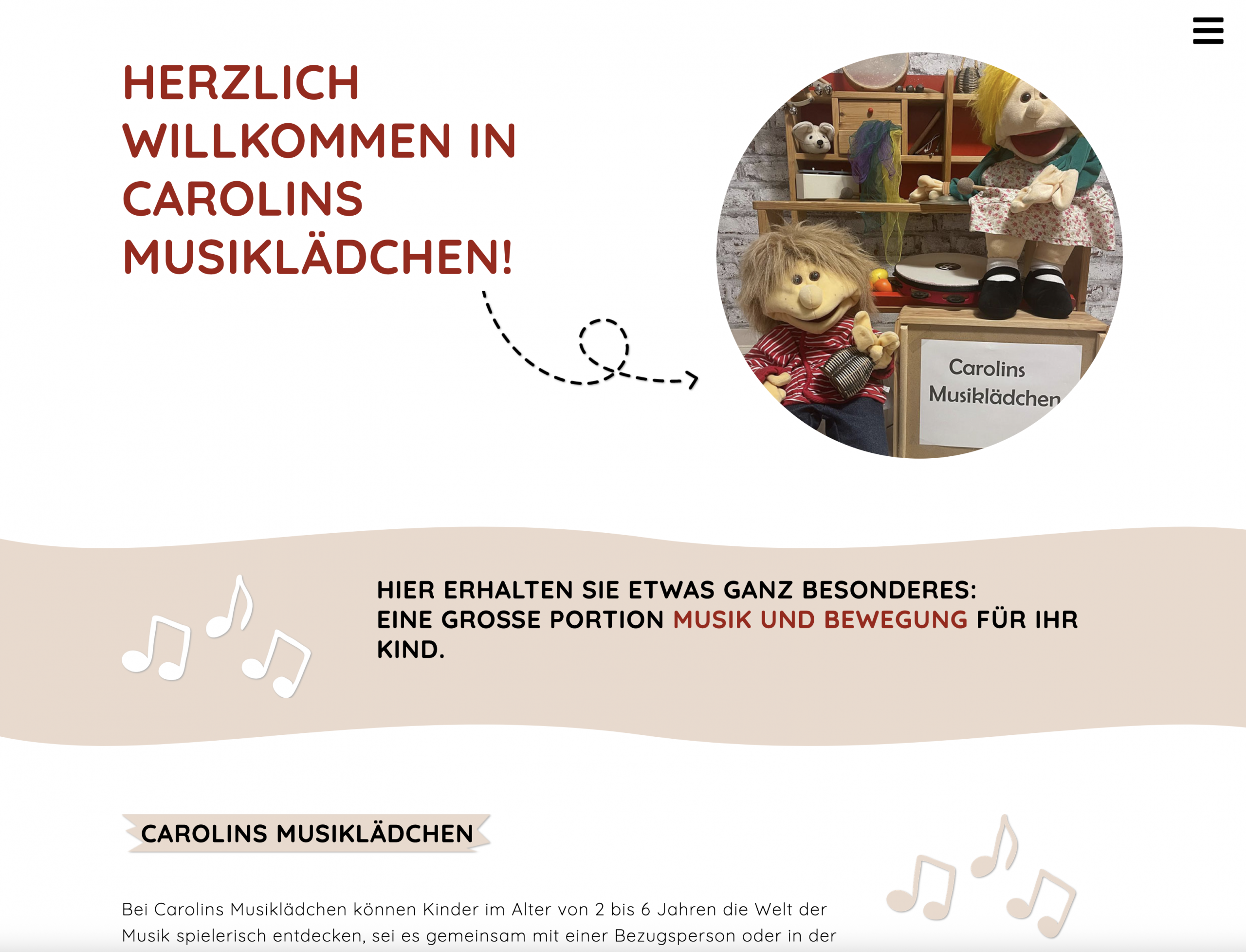 Web-Visitenkarte – Kurse für kleine Musikfans.